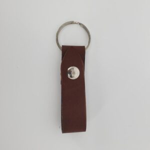 Leather Handmade Keychain Brown Silver Button Unisex